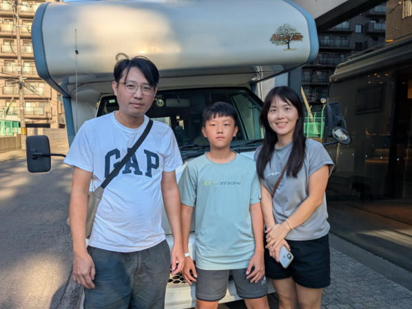 キャンピングカー旅 2025/08/16 台湾からのお客様♬旭川空港から出発いただき、札幌のホテル前で到着しご返却頂きました!1週間の道東観光の旅。記念写真は返却時に宿泊先のホテル前にて撮らせて頂きました。
